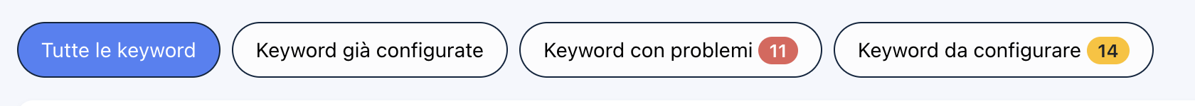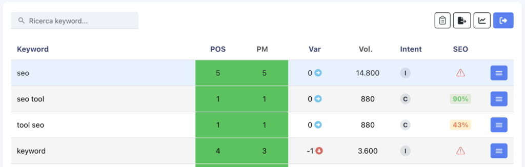• nella sezione SEO leggi quante keyword totali ha il sito e come sono distribuite nelle prime posizioni (Top 3, Top 10, fasce 4–6 e 7–10). È una fotografia della solidità delle tue SERP;
