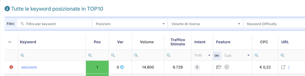 Il suo scopo è unico: ti rivela qual è la parola chiave principale per cui Google considera rilevante ogni tuo URL e ti permette di verificare se hai effettivamente ottimizzato la pagina per quella specifica query che attira traffico. Spesso, infatti, una pagina si posiziona e riceve visite per una keyword che non era quella che avevamo in mente durante la stesura.