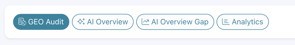 L’area si basa su tre strumenti complementari: GEO Audit, che analizza l’identità del brand nei modelli addestrati, mostrando come l’AI “conosce” e descrive la tua entità; AEO Audit, che valuta invece la rappresentazione del brand negli Answer Engine che operano in tempo reale, restituendo una fotografia aggiornata dell’efficacia delle tue attività GEO e SEO; e AI Prompt Tracker, che collega domande specifiche alle pagine del sito considerate dai Motori AI, permettendoti di leggere la relazione tra prompt, fonti citate e visibilità nelle SERP tradizionali. Le tre analisi si integrano e ti permettono di distinguere tra reputazione consolidata, prestazione attuale e copertura dei bisogni informativi.